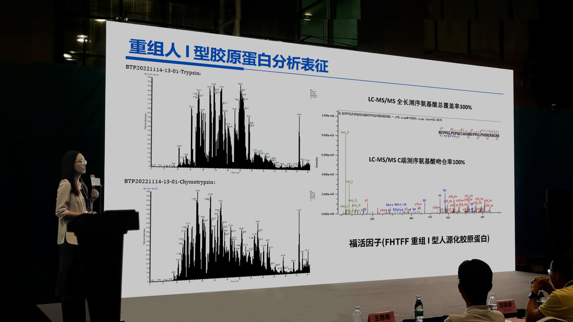 膠原(yuan)蛋(dan)(dan)白(bai)因其獨(du)特的(de)生物(wu)相容性和多(duo)(duo)種功能(neng)特性,在(zai)醫(yi)療和美(mei)容領域應(ying)用廣泛(fan),但其多(duo)(duo)樣性和復雜性也給質量(liang)控(kong)制帶來挑(tiao)戰。中國科學院張貴鋒研究員團隊(dui)通過生物(wu)質譜技術,篩(shai)選不(bu)同(tong)類(lei)型(xing)膠原(yuan)蛋(dan)(dan)白(bai)的(de)特征多(duo)(duo)肽,成(cheng)功實(shi)現分子水平溯源。這種高(gao)通量(liang)質譜定量(liang)分析方法,能(neng)夠準確(que)地鑒定和定量(liang)不(bu)同(tong)種屬、亞型(xing)的(de)膠原(yuan)蛋(dan)(dan)白(bai),能(neng)在(zai)低至2ng/ml、3ng/g和2ng/g的(de)(de)(de)濃度下,對液體、膏狀和凝(ning)膠(jiao)(jiao)敷(fu)料中的(de)(de)(de)膠(jiao)(jiao)原(yuan)蛋白進行痕量檢測。張貴(gui)鋒團隊高(gao)建萍博士,還展示了中國科學(xue)院膠(jiao)(jiao)原(yuan)蛋白國際研發中心(xin)對福(fu)萊明生物(wu)原(yuan)研創新的(de)(de)(de)福(fu)活因子(重組(zu)I型(xing)人(ren)源化(hua)膠(jiao)原蛋(dan)白)、融合因(yin)子(zi)(重組類膠(jiao)原蛋(dan)白)的表(biao)征(zheng)分析研(yan)究,結果顯示:福活因(yin)子不僅PAGE電泳純度高于95%,HPLC液相色譜純度更是達到99%以上。