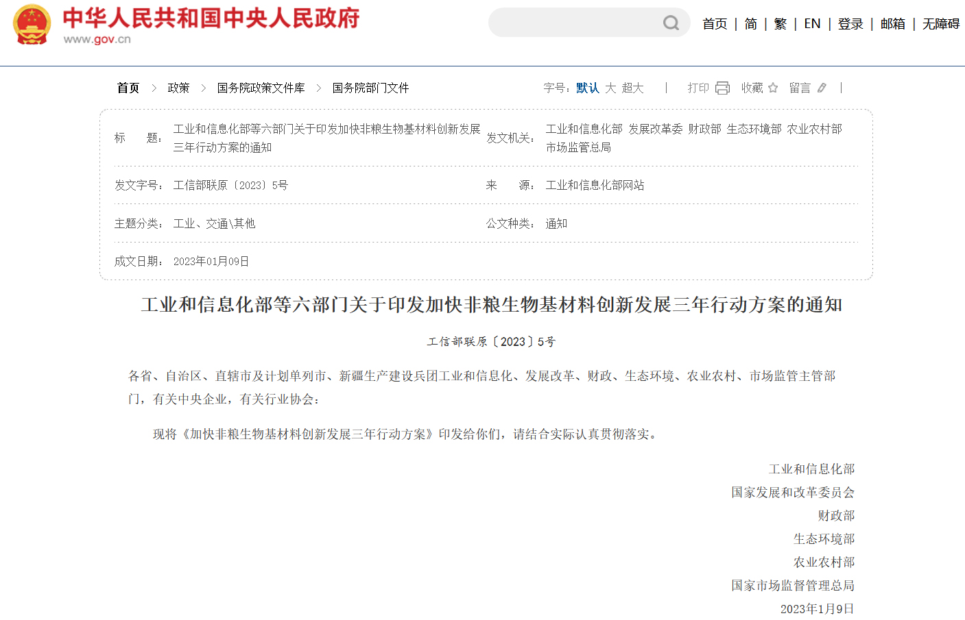 國家發布加快非糧生物基材料創新發展三年行動方案